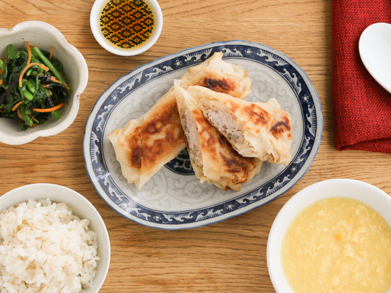 時間がかかる春巻きも、具材を炒めず、包んで焼くだけなのでとても簡単。しゃきしゃきとしたもやしがたっぷりで、食べ応えも満点です。まず春菊の海苔あえとコーンスープを作ります。春巻きは水けが出ると皮が破れやすくなるので、巻いたらすぐに焼きます。春巻きが出来る直前に、スープを温め直して熱々を召し上がれ。