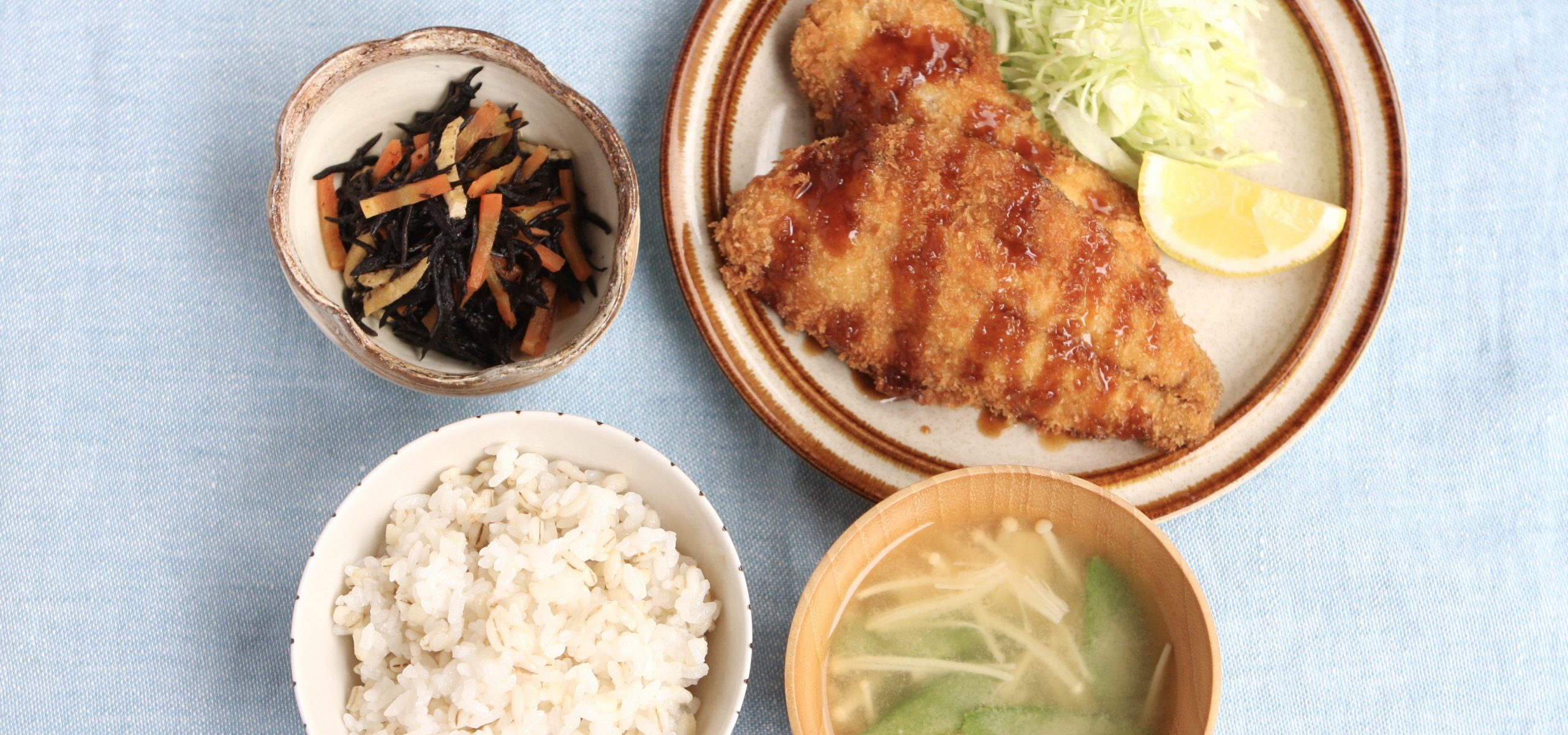 あじフライ・電子レンジでひじき煮・えのきたけと絹さやのみそ汁・麦ごはん(押麦3割)